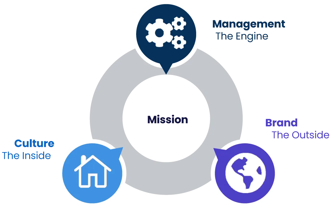 We provide all our services within the context of your Mission, Management, Culture, and Brand. This matters because all four are closely linked to run a company well.