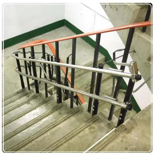 - 一樓往下設置180度的起點 將座椅收納停放至地下室的樓梯空間 為的就是讓鄰居在一樓門口時 仍留有許多空間通行 不影響上下樓梯的動線 且為達節省樓梯使用空間 不論在直軌或彎軌設置 皆使用實心不鏽鋼軌道 方使轉彎所需半徑小 達成距離7公分超~貼近樓梯扶手的任務