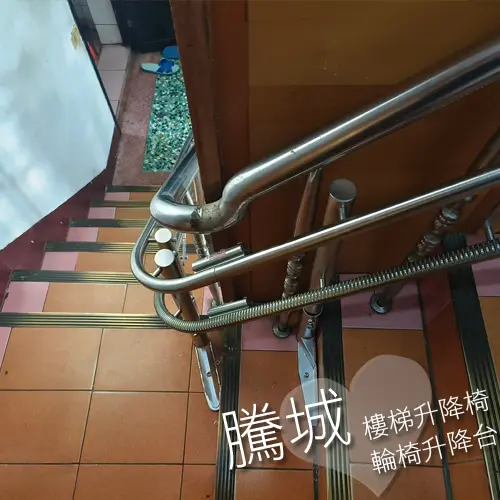 Teng Cheng’s stair lift is built with a stainless steel frame, enhanced by a fully enclosed front bar handrail.