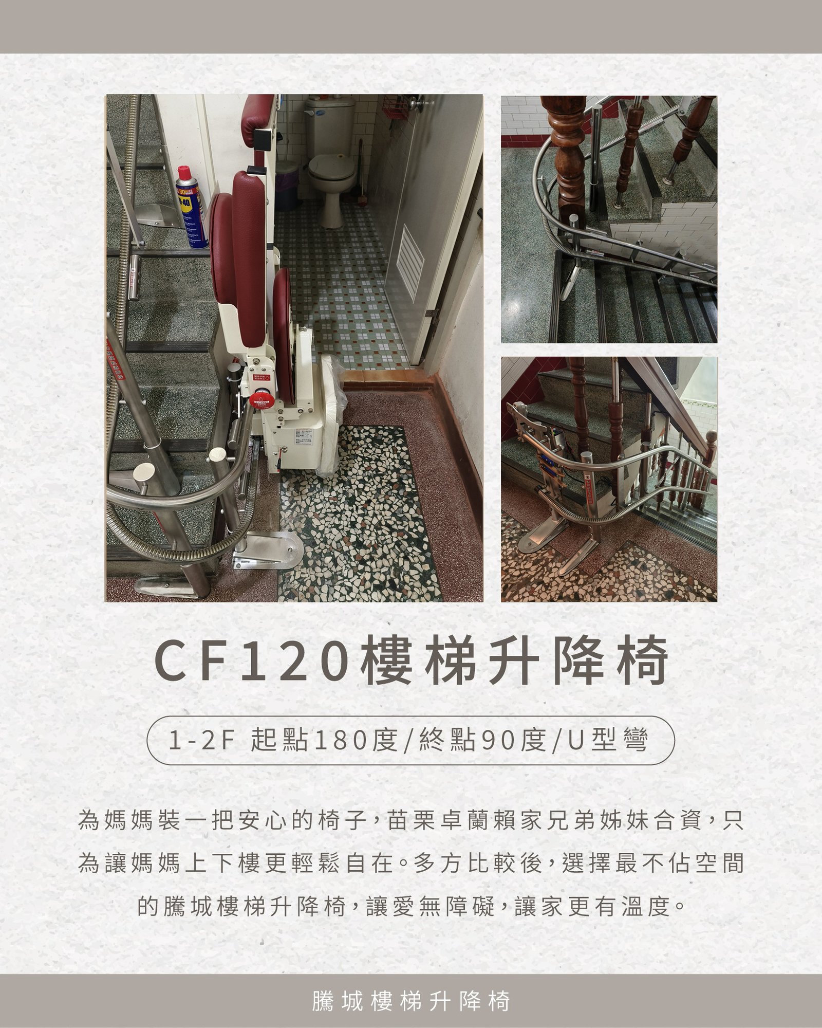 and installed a Tengcheng CF120 stairlift for their mother.