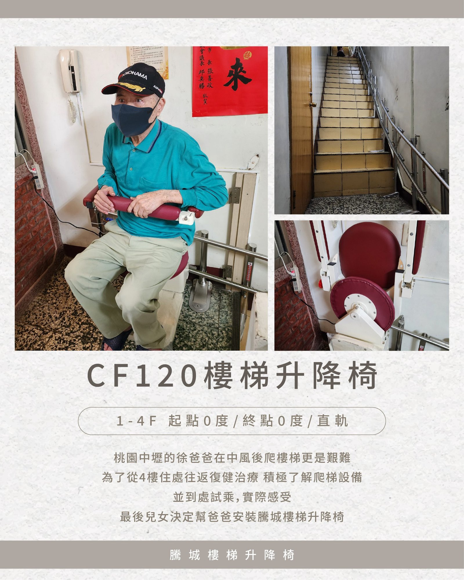 To travel from his fourth-floor home to the hospital for rehabilitation, he and his family actively searched for different solutions, personally trying out each option to experience the safety and comfort of various equipment.