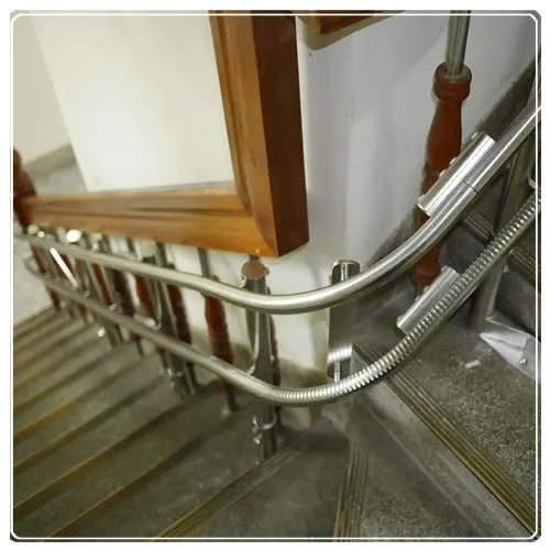 - The solid rail and gear rack are integrally molded, enabling the rail to fit snugly against the handrail and achieve space-saving efficiency.