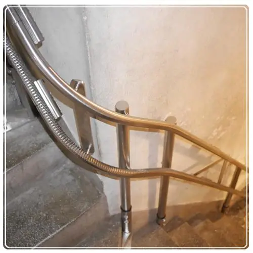 - Solid stainless steel rails save even more staircase space. The curved rails feature a smaller turning radius, allowing the base to sit closer to walls or handrails. Moreover, the stainless steel material is exceptionally easy to maintain.