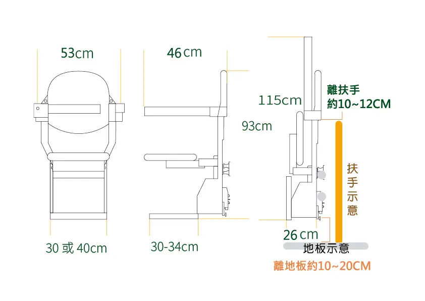 • 可折疊成窄幅尺寸,有效釋放樓梯空間